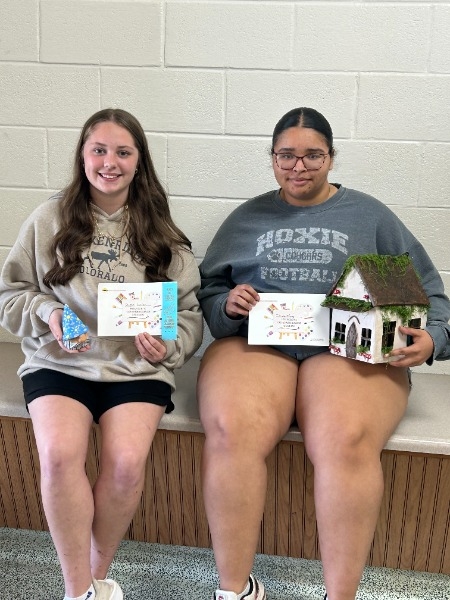 Campbell’s art project started as a pinch pot and formed into a gnome consisting of a head with a hat and beard. Iauna’s project is a whimsical clay house that was slab-built. You can peek through the window and see a finished interior with furniture, a rug, and a stove. Both projects were finished with acrylic paint. Even though these students didn’t place at the show, they had the honor of their work being chosen and displayed in Topeka.